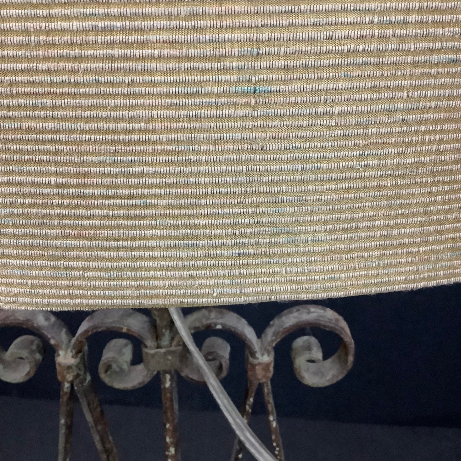 [beyt] by 2b Design upcycled wrought iron lamp base with oval textured shade, made in Lebanon. 16h, base to bulb, 12 x 7.5 shade , 21.75 overall. 1 piece.