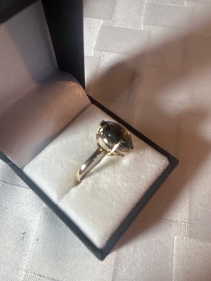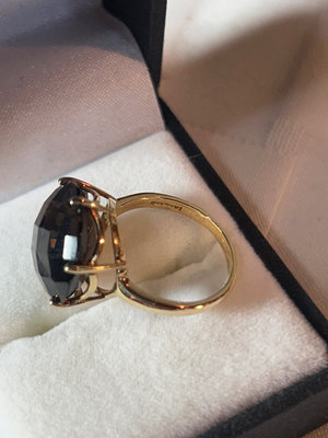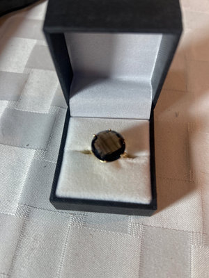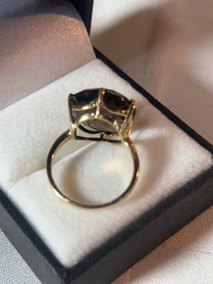 The stone could be amethyst but compared to other amethysts, it looks more brown, maybe a brown topaz or a smoky quartz. Ring is stamped 14 K.