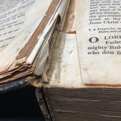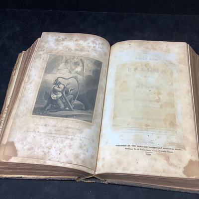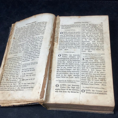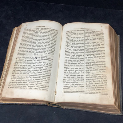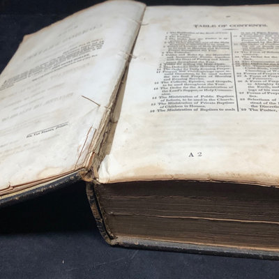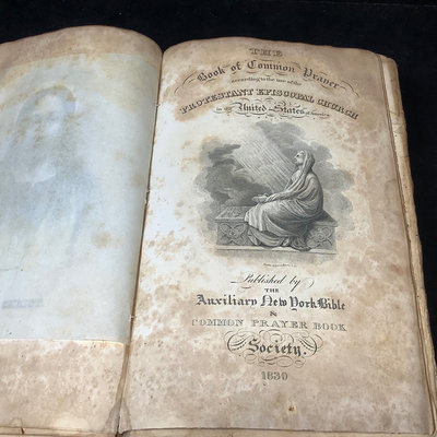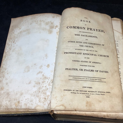 The Book of Common Prayer 1830, for the Protestant Episcopal Church, published by the New York Protestant Episcopal Press. Leather bound. Condition issues include brittle, cracks in spine/binding, foxing. 6x9.5x2.25. 1 piece.