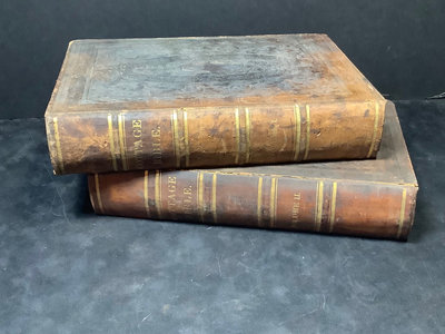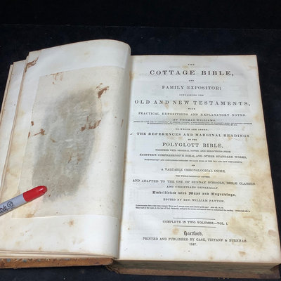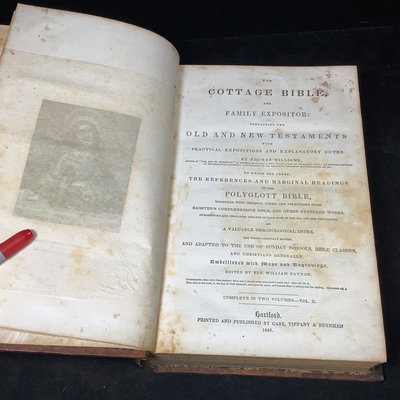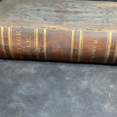 The Cottage Bible, Vol. I and II, published by Case, Tiffany & Burnham, Hartford, 1847. 7.25x11x2.25. 2 pieces.