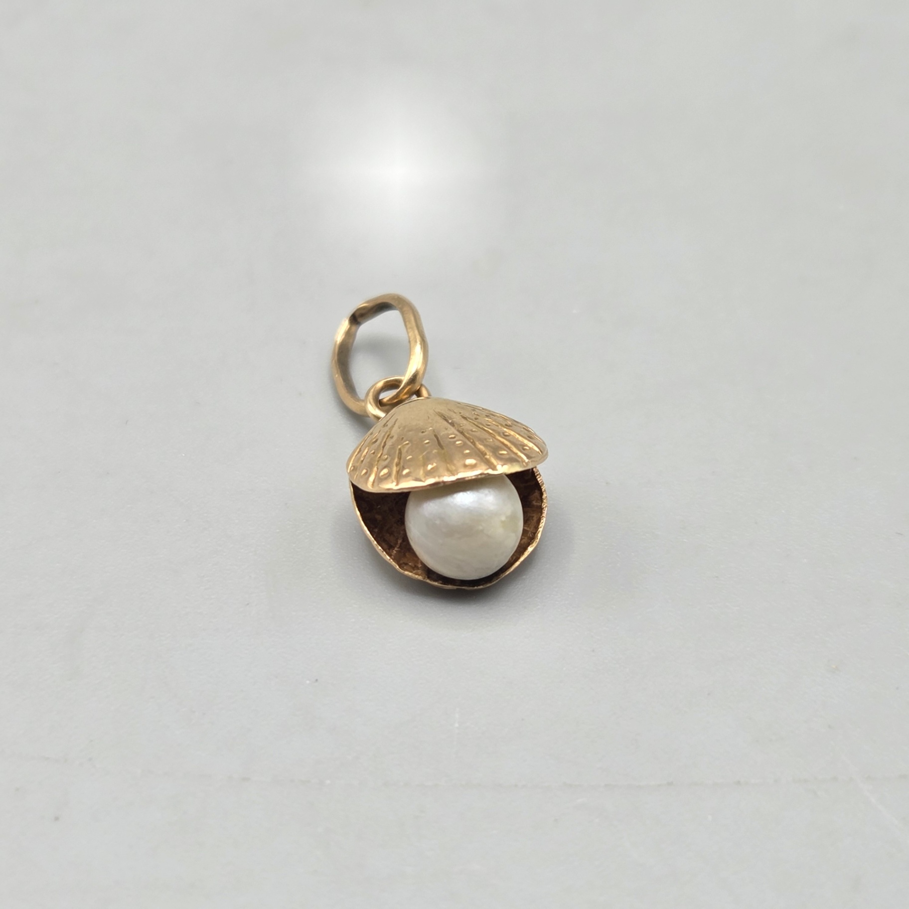 With pearl of unknown origin. Marked 750 Total weight 1.15 Grams
