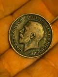 the first shows a seated figure with the date 1918 on the reverse; the second features the obverse portrait of King George V with the inscription GEORGIVS V DEI GRA BRIT OMN REX FID DEF IND IMP around the edge.