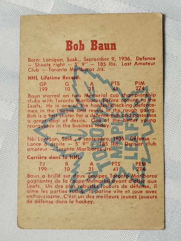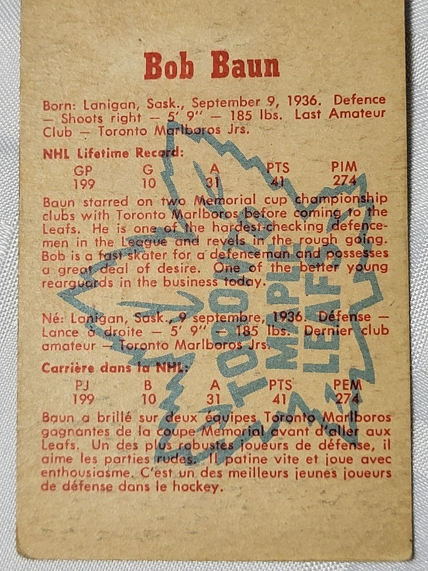Good grade second year card of the Leafs legend.