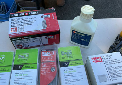 1 of the Dewalt guns has a note that it jammed and needs fixing, the two Rigid Nail Guns look new. And lots of pneumatic nails.