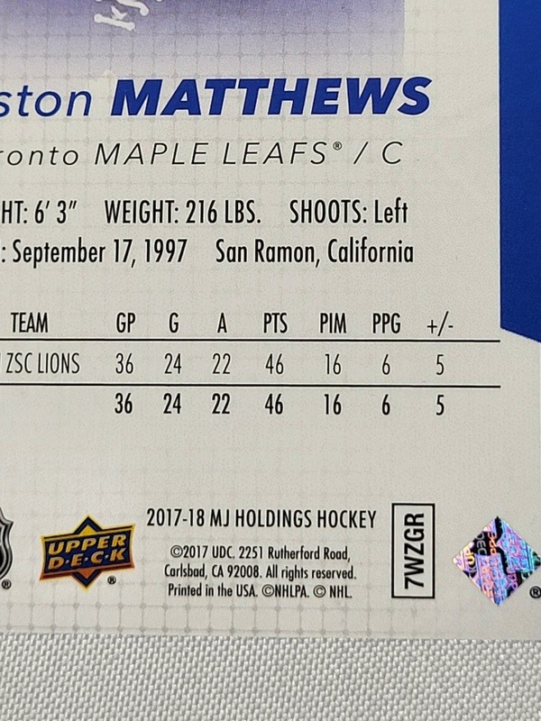 High grade rookie card of the Leafs superstar.