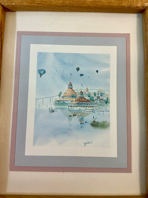 These are all 8” x 10”, 4 are watercolor’s of light houses, and 4 are photos from a garden. The two frames, 9” x 11”, feature water color of the famous Hotel Del Coronado on the beach in San Diego.