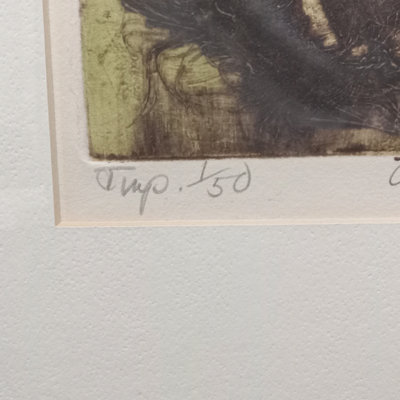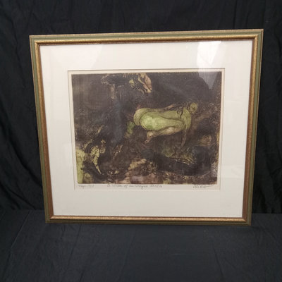 Alice W. (Emery) Enge (American contemporary), often signing her work as Ali or Ali Web, many of her works were woodcut or linocut. A Victim of an Illegal Abortion, Imp 1/50. Art 11.5x14.25, frame 18.5x21. 1 piece.