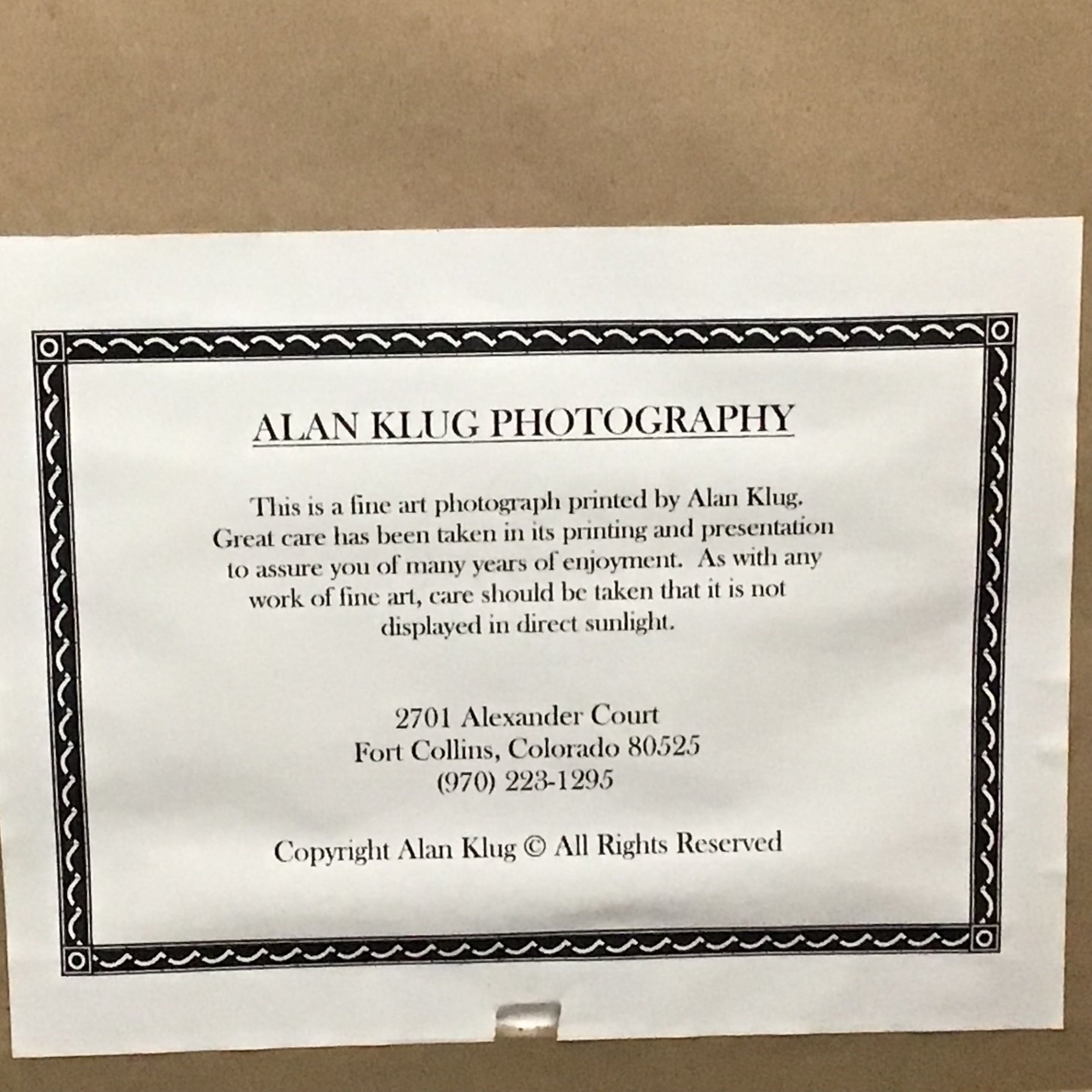 Alan Klug (Contemporary). "Martha's Vineyard" framed photograph, signed on mat, information about the artist on the back. Art 5.5x4.5, frame 22.25x18.25. 1 piece.