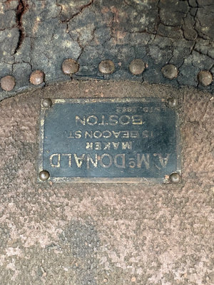 Alexander Macdonald Co. Boston MA established around 1852 was known for quality steamer trunks featuring quality construction with canvas, leather and brass fittings.
