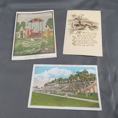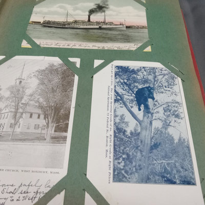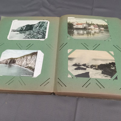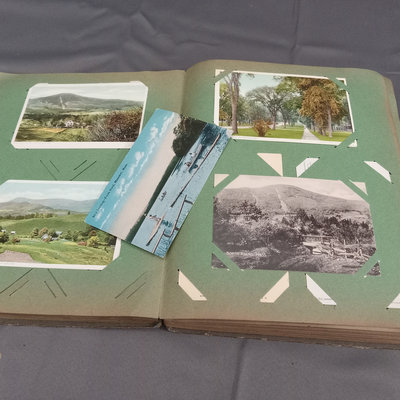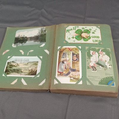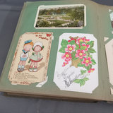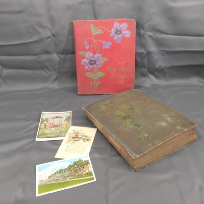 Scrapbooks filled with mailed and unmailed postcards of places, holidays, and more. Circa 1910. 2 pieces.