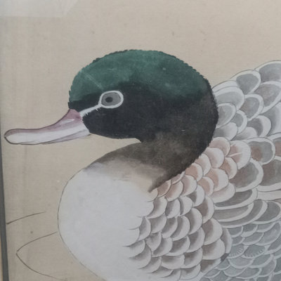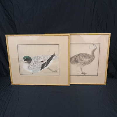 Vintage Duck and Pheasant woodblock prints, matching frames, unknown artist. 16.75x19.75 framed. 2 pieces.