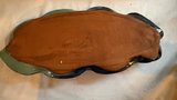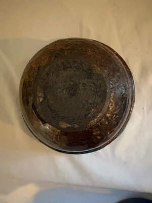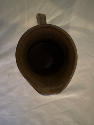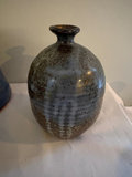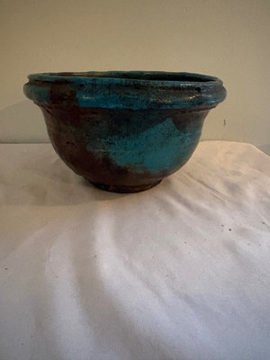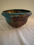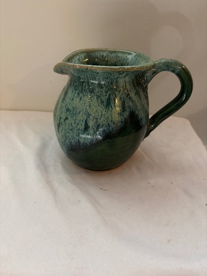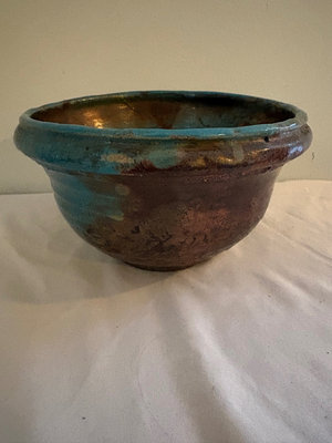 1964 Bennington Studios brown pitcher, 4.75” tall. Hand thrown mid century small vase , Japanese influences shape and style, Bowl with blue and copper metallic glaze, raku style , 6” diameter. Speckled and dripped glazed pitcher , 6” tall. Vase that features a distinctive blue-green drip glaze finish and a primitive upper rim. Artistic tray with irregular shape in blue and green glaze, 14” long, 5.5” wide.