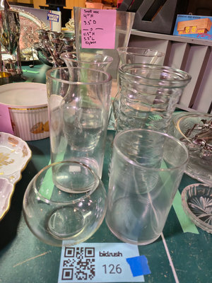 A collection of clear glass vases of multiple shapes and sizes. **BRING OWN PACKING MATERIALS