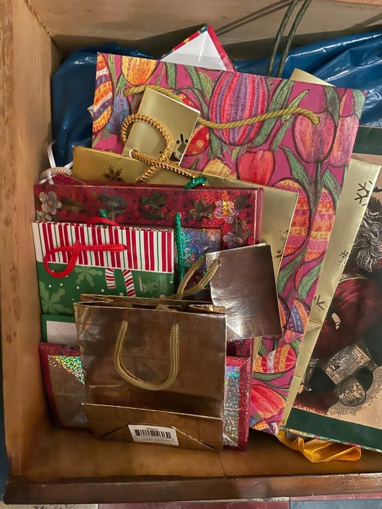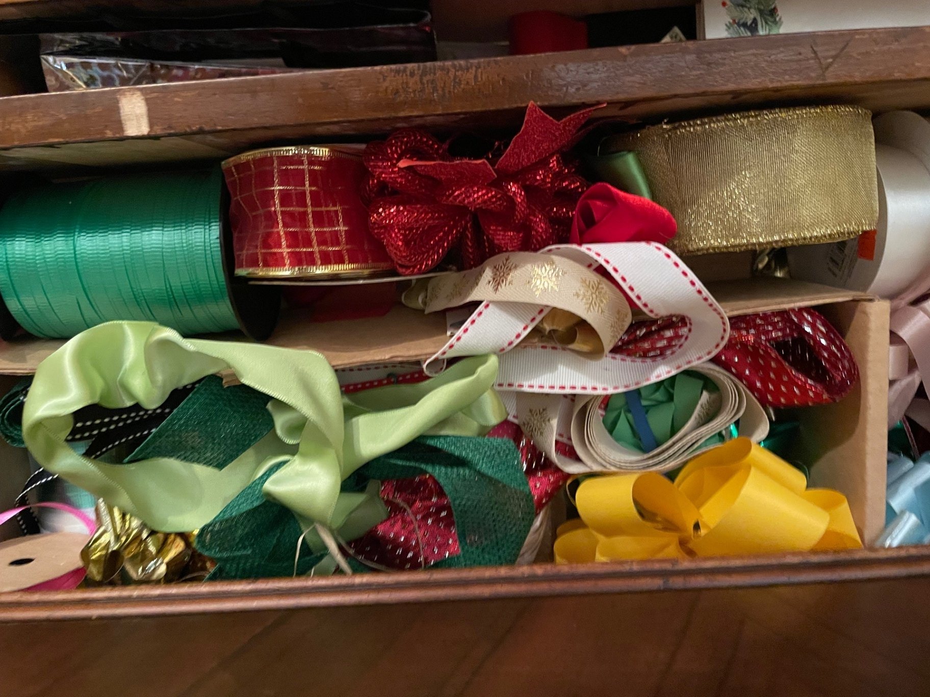Assorted gift wrapping materials including ribbons, bows, many gift bags in various sizes, tissue paper etc. inside 3 drawers. ** BRING OWN PACKING MATERIALS. Drawers not included.