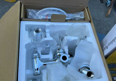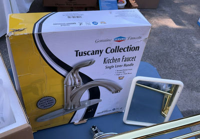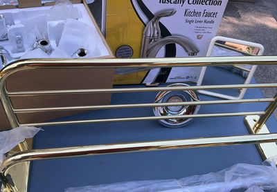 Includes a new in Box Kitchen and Bathroom faucets, brass and polished steel towel br and more.