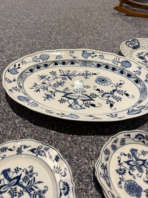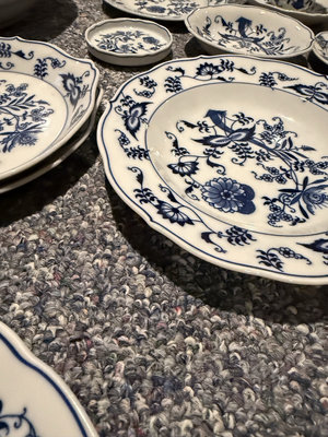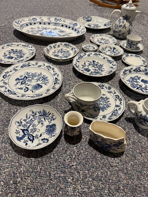 A collection of Blue Danube porcelain dinnerware and tea service featuring cobalt blue floral motifs, including large and small plates, bowls, saucers, cups, a teapot with lid, a creamer, a sugar bowl, and a tall pitcher. Approx 165 pieces