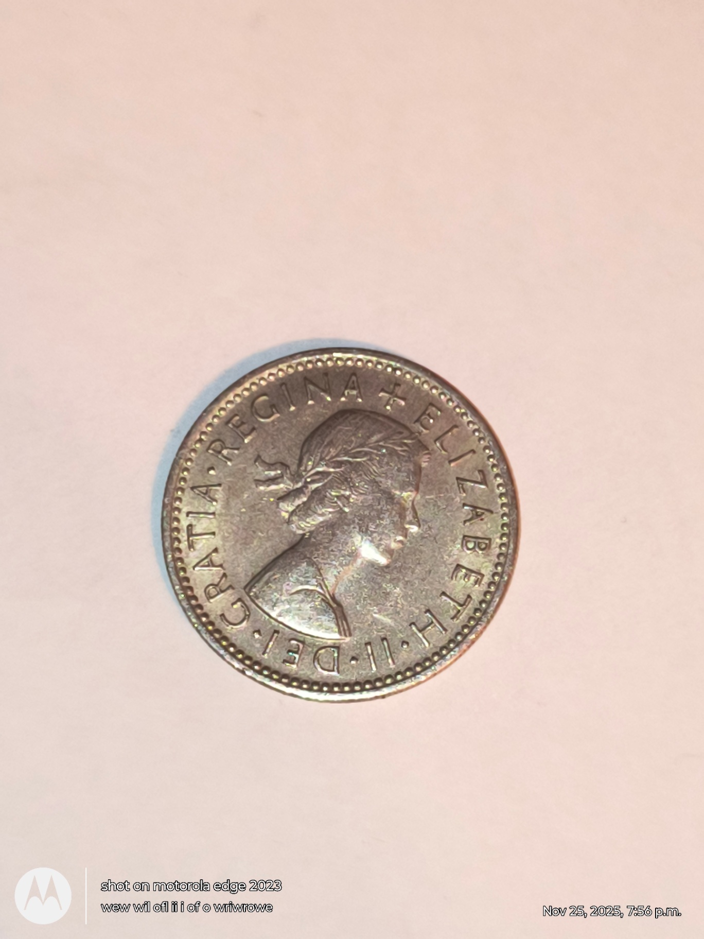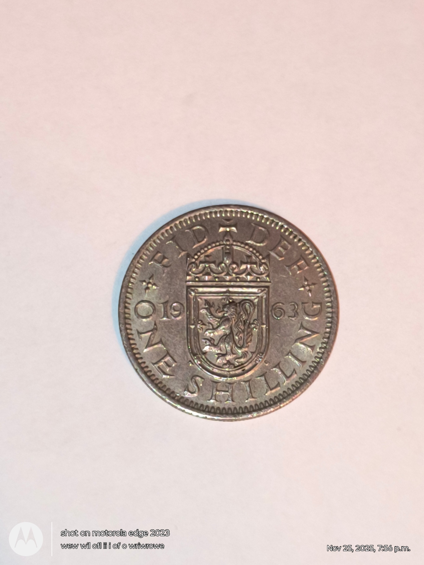 Two British coins: one with a side profile of Queen Elizabeth II and surrounding inscription, and a 1963 One Shilling coin showing a crowned shield crest and the words ONE SHILLING.