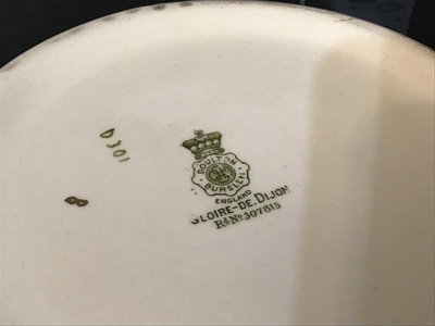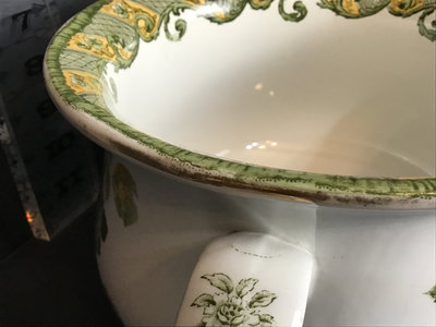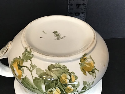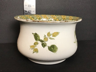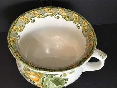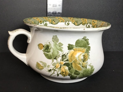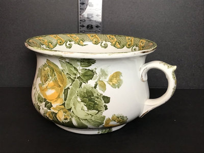 Royal Doulton Burslem Glorie-de Dijon Chamberpot, green and yellow roses design, made in England, circa 1900, 9d x 5.5h. 1 piece.