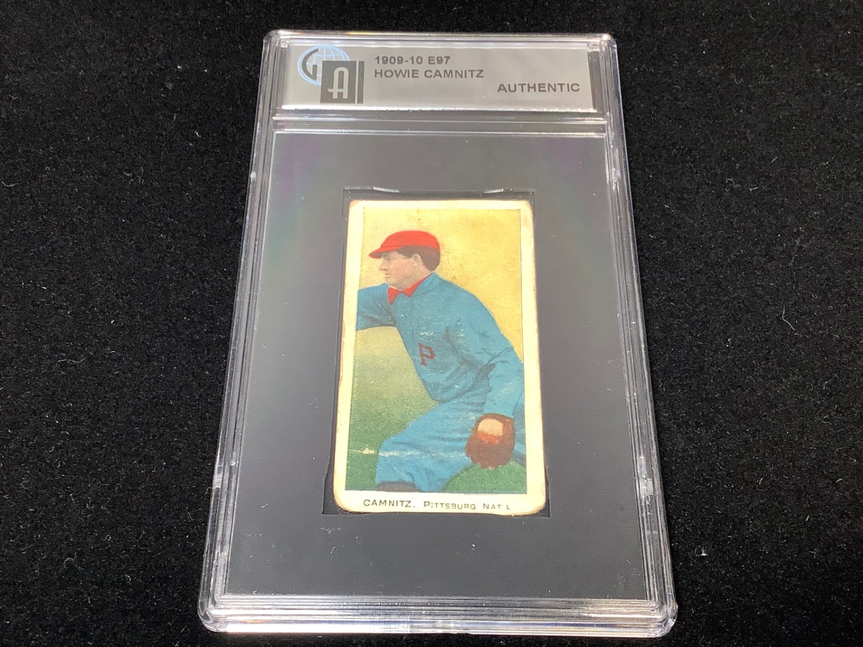 Advertising baseball card from C.A. Briggs Co., E97-1 color, featuring Howie Camnitz for Pittsburgh, National League. Cased in acrylic, no. 10317909 Global Authentication Inc. Purchased in 2006. 1 piece.
