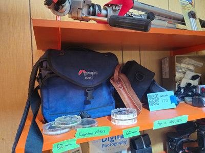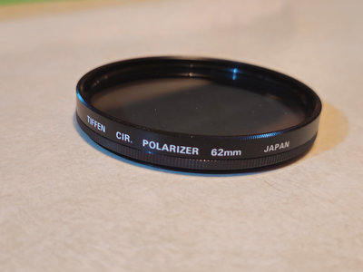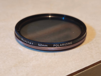 Collection of camera lens filters (52mm and 62mm) including polarizing, neutral density, and skylight filters, plus a Lowepro Nova 2 camera bag and related camera accessories. UNTESTED, as is as found. ** BRING OWN PACKING MATERIALS