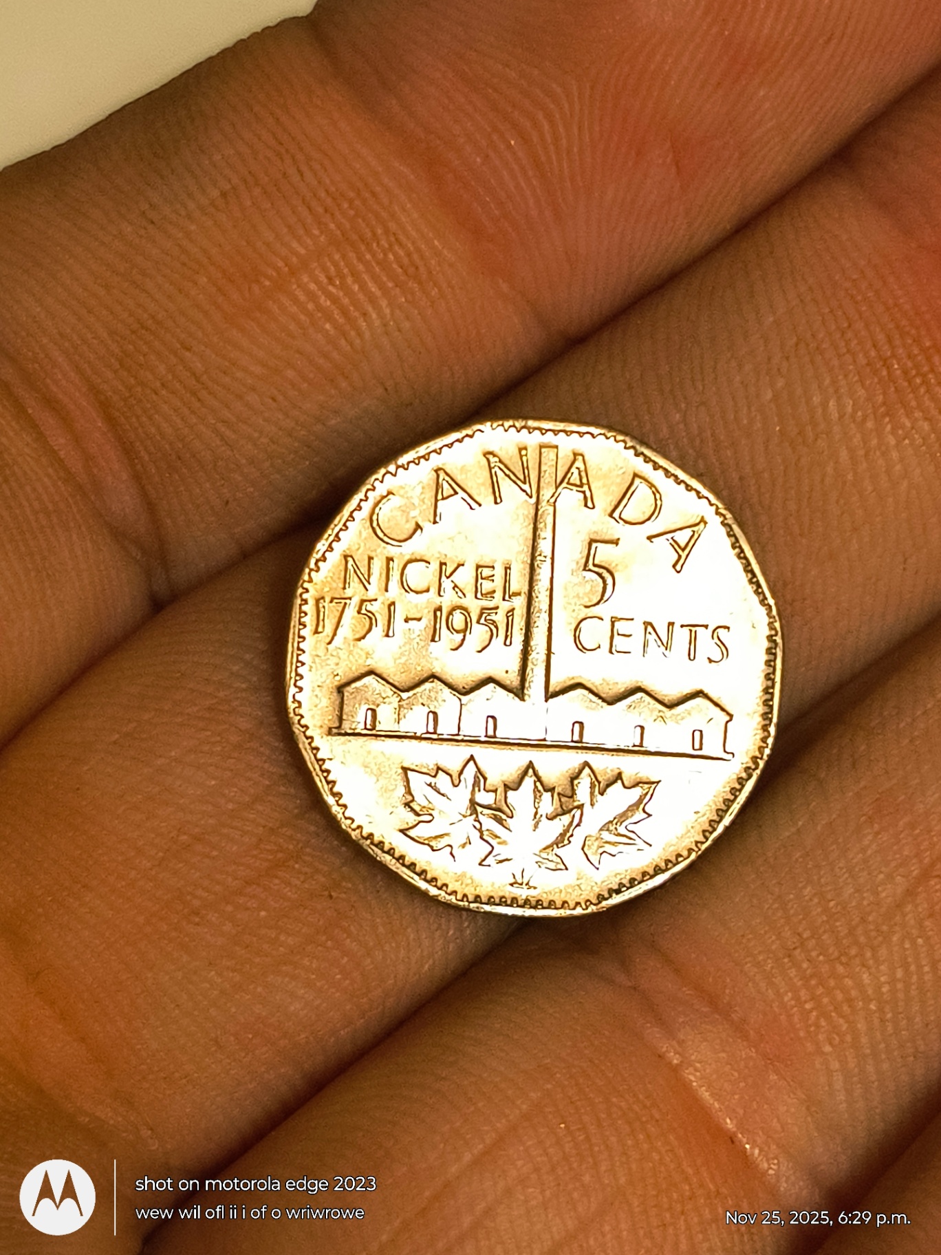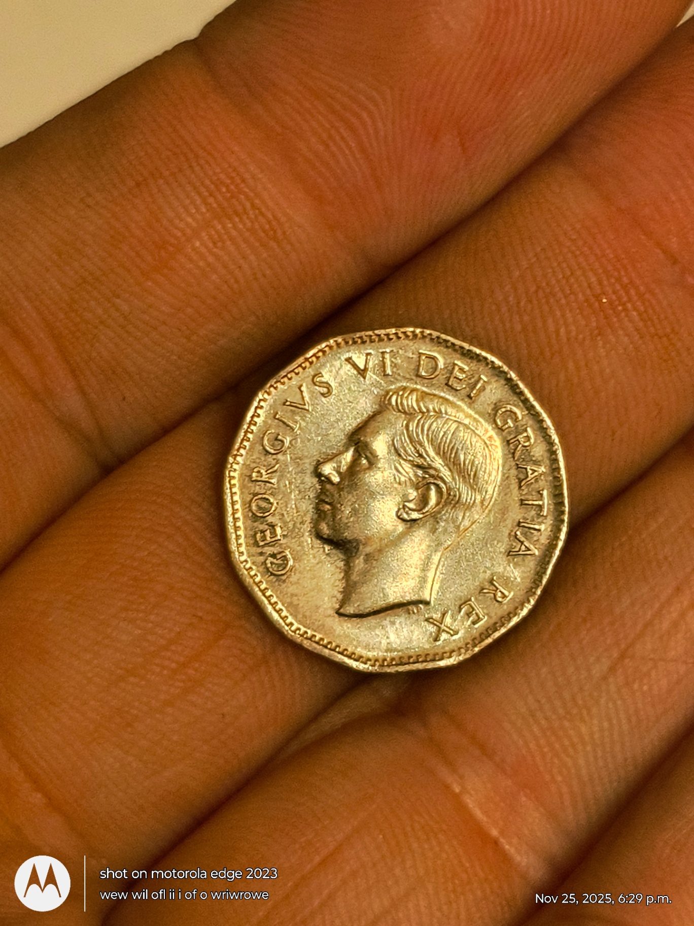 Two Canadian five-cent nickel coins, both with the obverse featuring King George VI and the reverse depicting a Parliament building with a maple leaf; one coin includes the date 1951.