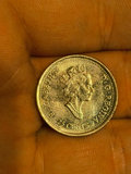 Canadian coins: a 1999 coin with an intricate floral design on the reverse and a Canadian one-cent coin featuring Queen Elizabeth II.