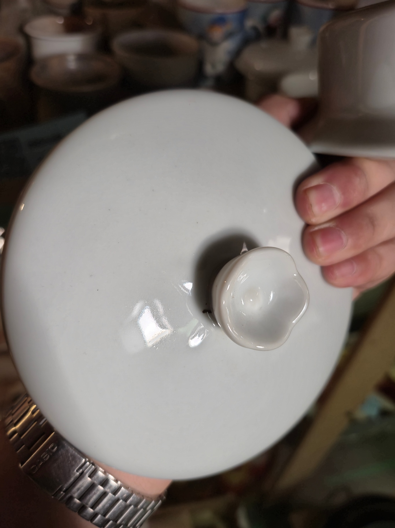 A collection of ceramic kitchenware including a textured white pitcher, a lemon-themed ceramic jug with leaves, two lidded containers, and a holiday-patterned mug, along with a vintage metal moka coffee pot made in Italy, and related coffee accessories. **BRING OWN PACKING MATERIALS, untested.