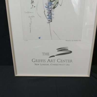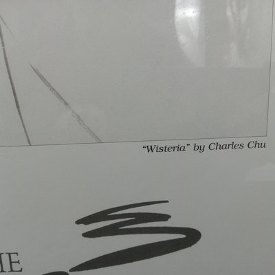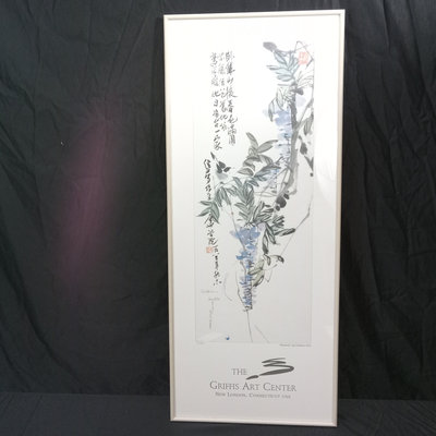 Wisteria by Charles Chu, no. 114/500, signed by artist and addressed to previous owner, within a poster from the Griffis Art Center, New London Connecticut. Information on the artist in an pocket on the back. Framed 32.25x13.25. 1 piece.
