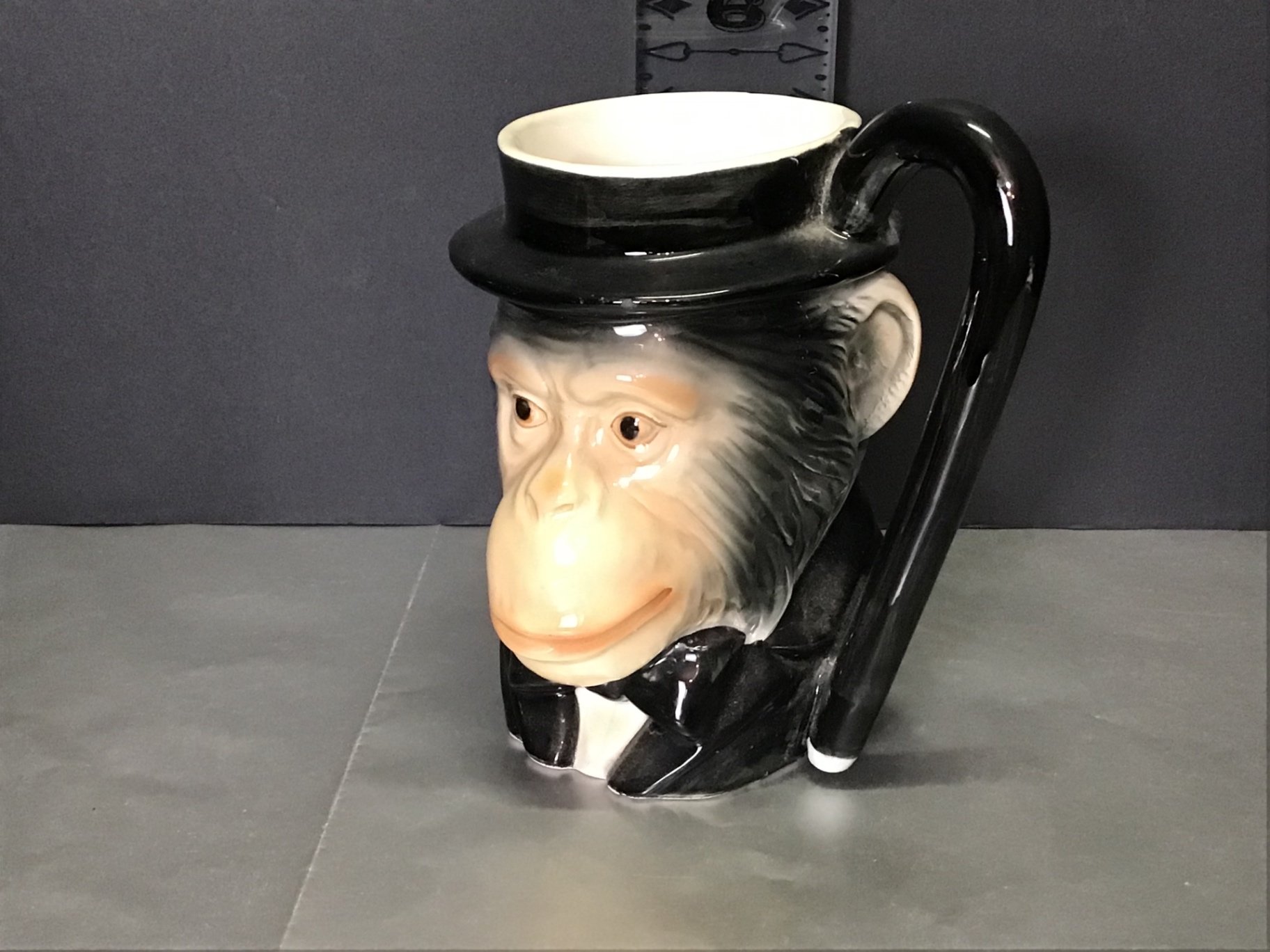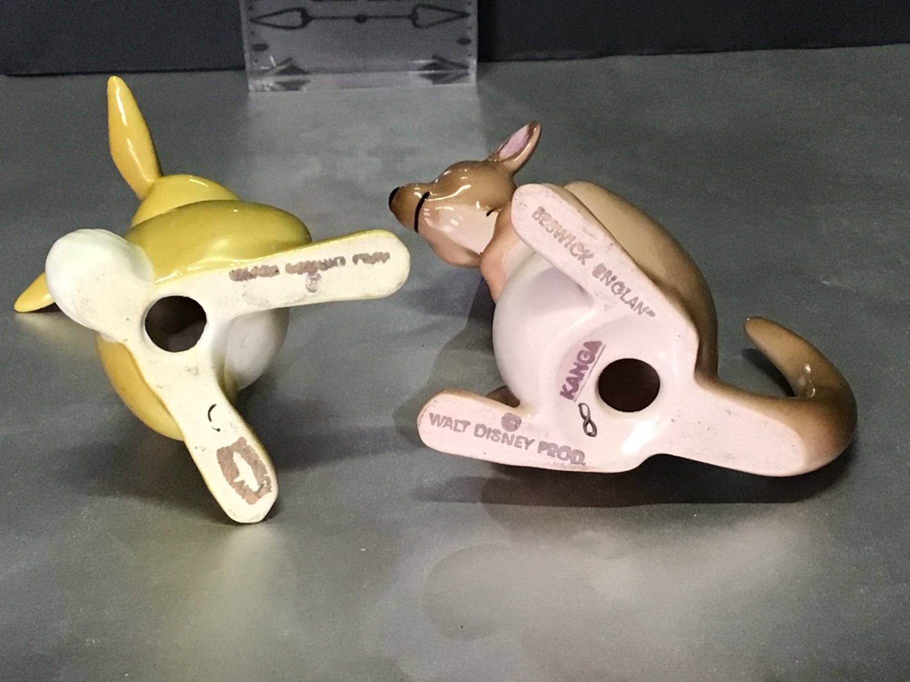 QJON-QUON 1982 Japan Chimpanzee character jug, 6h. Disney / Beswick Pottery Piglet, Kanga, and Rabbit, 2.5h to 3h. 4 pieces.