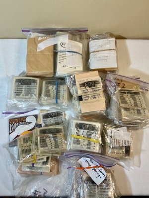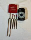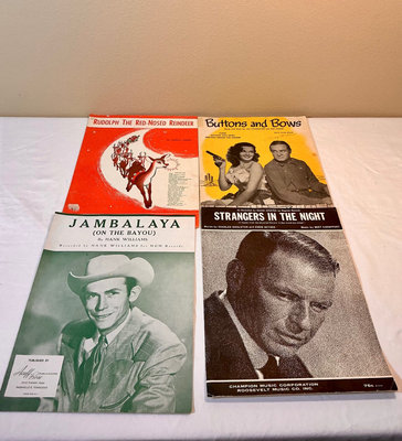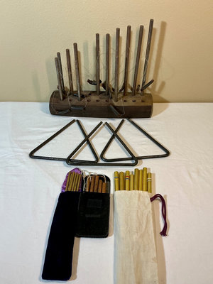 Large collection of music related items including lyre strings, harp strings, triangles, brass tone pipe sets, striking mallets, tuning forks, vintage sheet music and all you see here.