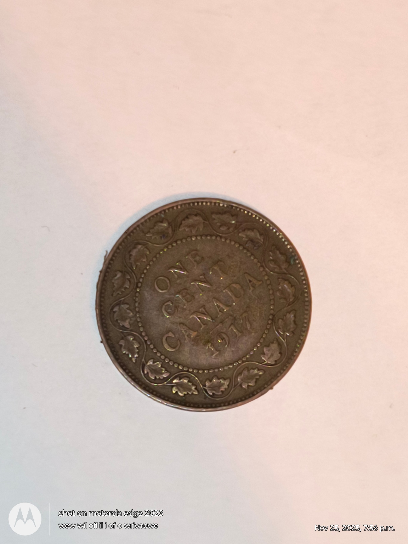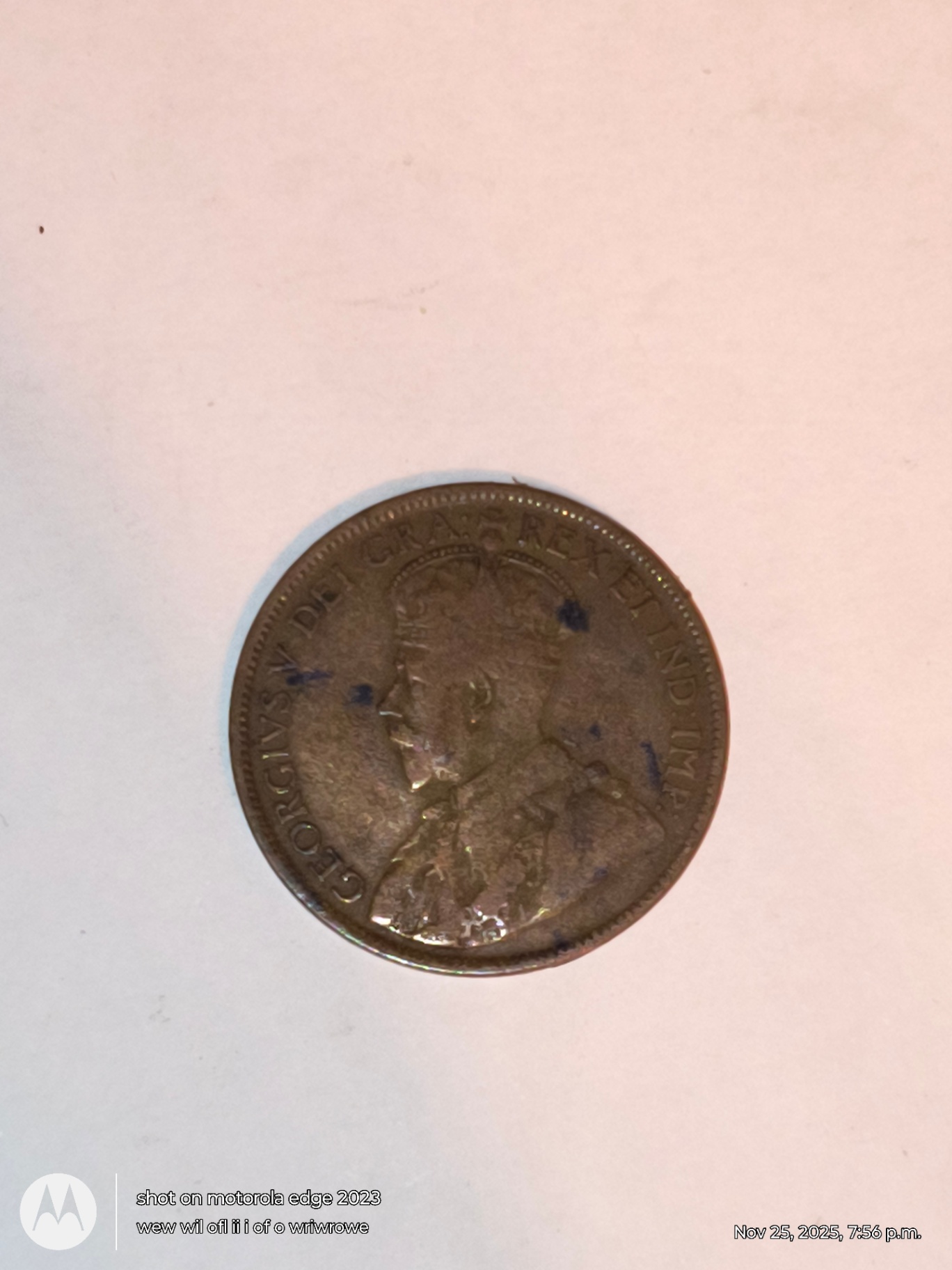 r of coins showing monarch-related designs: one with the inscription GEORGIVS VI D G BR OM IND IMP around a portrait; the other inscribed ONE CANADA 1917 with a decorative leaf border.