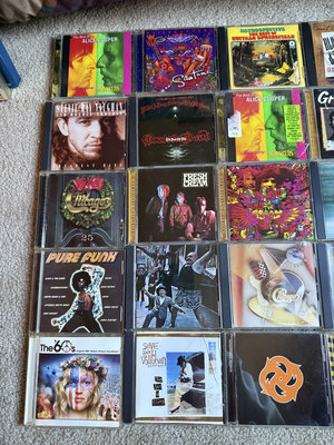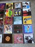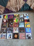 A collection of 25 compact discs featuring diverse artists and album artwork.