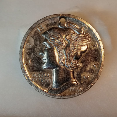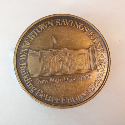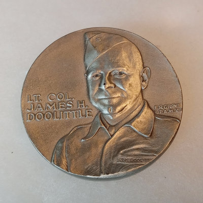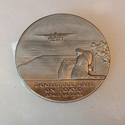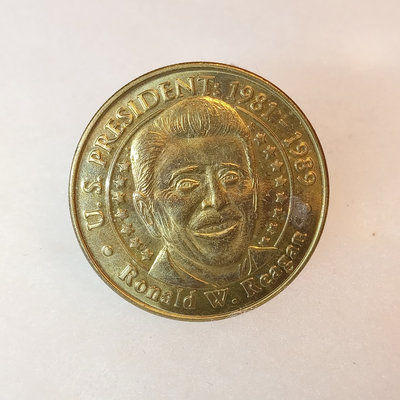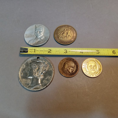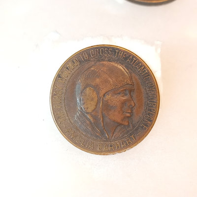 Amelia Earhart Copper Commemorative coin. Lt. Col. James H. Doolittle - Doolittle Raid on Tokyo Pewter coin. U.S. Bicentennial Watertown Savings Bank coin. Ronald Reagan / Sunoco Presidential Coin. Large-Size metal replica coin of the U.S. Dime, hole at top for display, wearing, etc. 5 pieces.