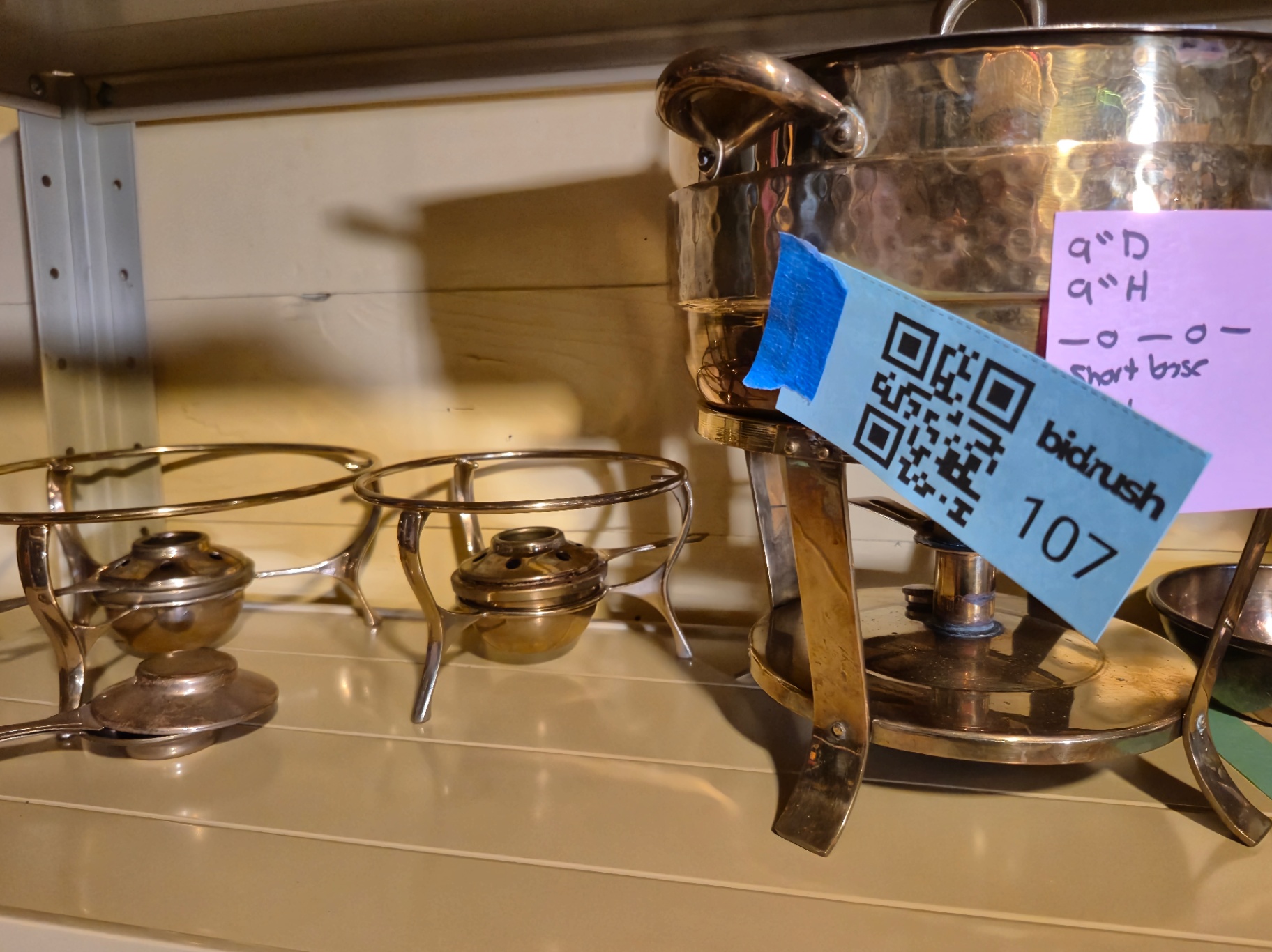 Meersburg Germany Hand Wrought. Copper Brass cookware consisting of a large polished brass pot with a lid and accompanying burner frames. **BRING OWN PACKING MATERIALS