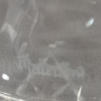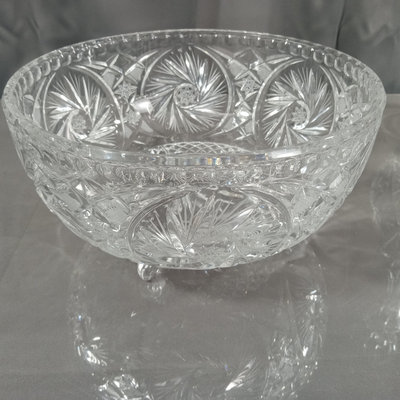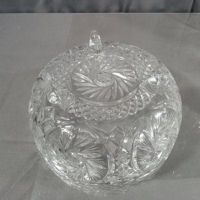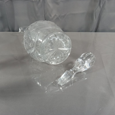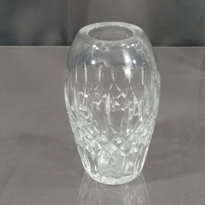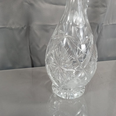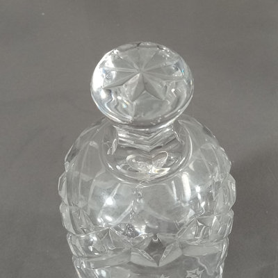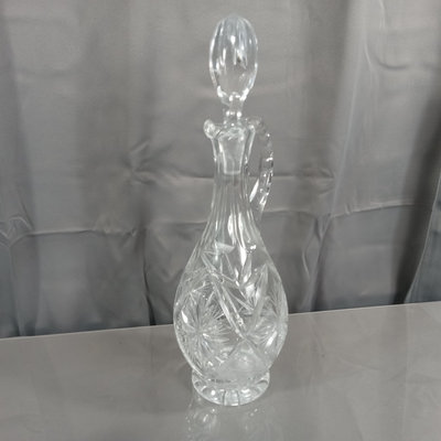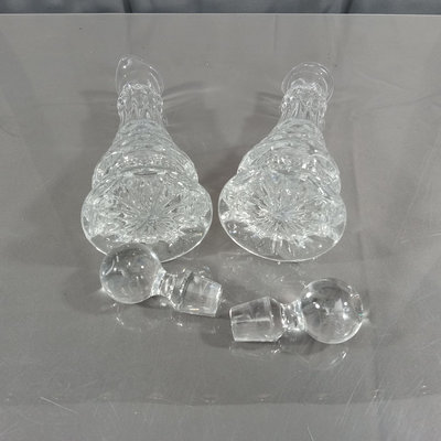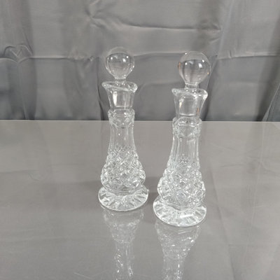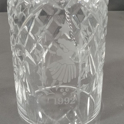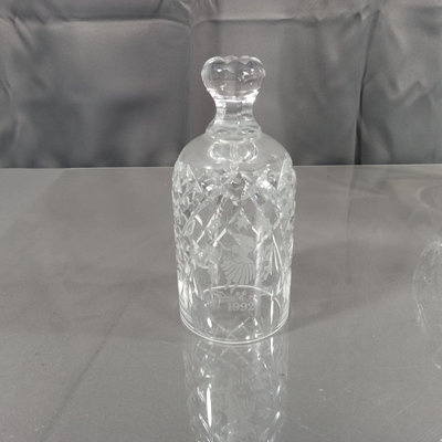 Footed Fruit/Candy Bowl, 8.5d x 4.5h. Waterford Crystal Bell, etched 1992 with angel, 5.25h. Small bud vase, 4.5h. Decanter, 15.5h. Pair handleless cruets, 8.5h. 6 pieces.