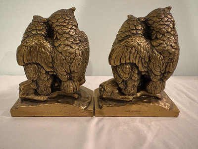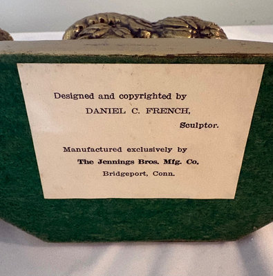 The Jennings Bros depiction of “lovebird” owl sculpture by Daniel French between 1900-1915. The bookends were created shortly after French's statue of John Harvard, which was completed in 1900.