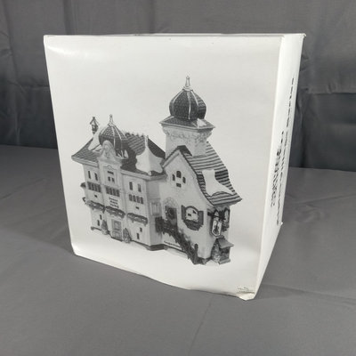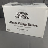 Alpine Village Series from the Heritage Village Collection, made exclusively for Dept. 56. Hand painted porcelain. No. 56173 Danube Music Publisher, with light, produced between 1996-2000. Gently used and stored with original packaging. 1 piece.