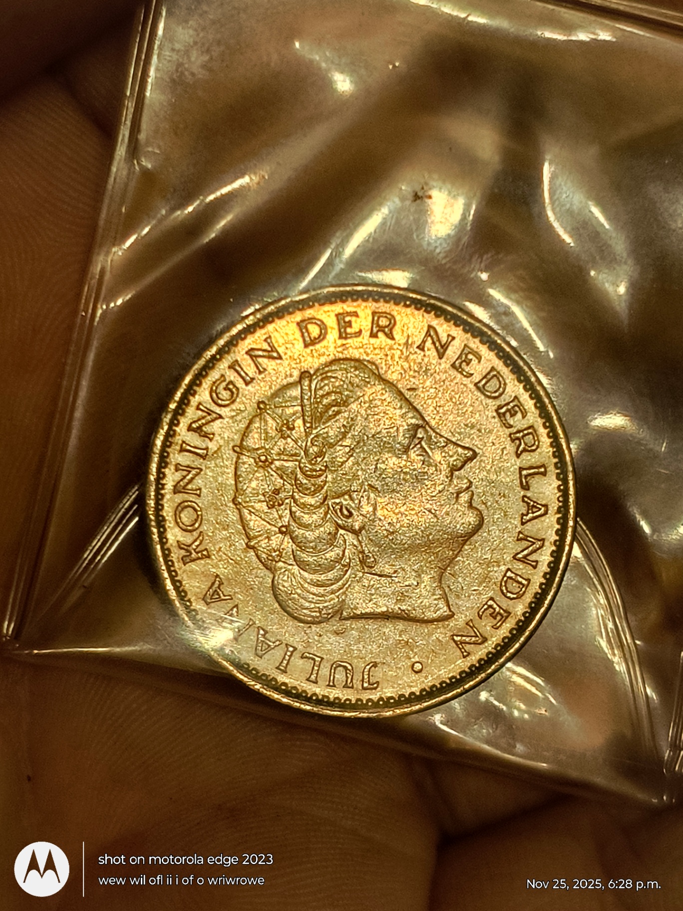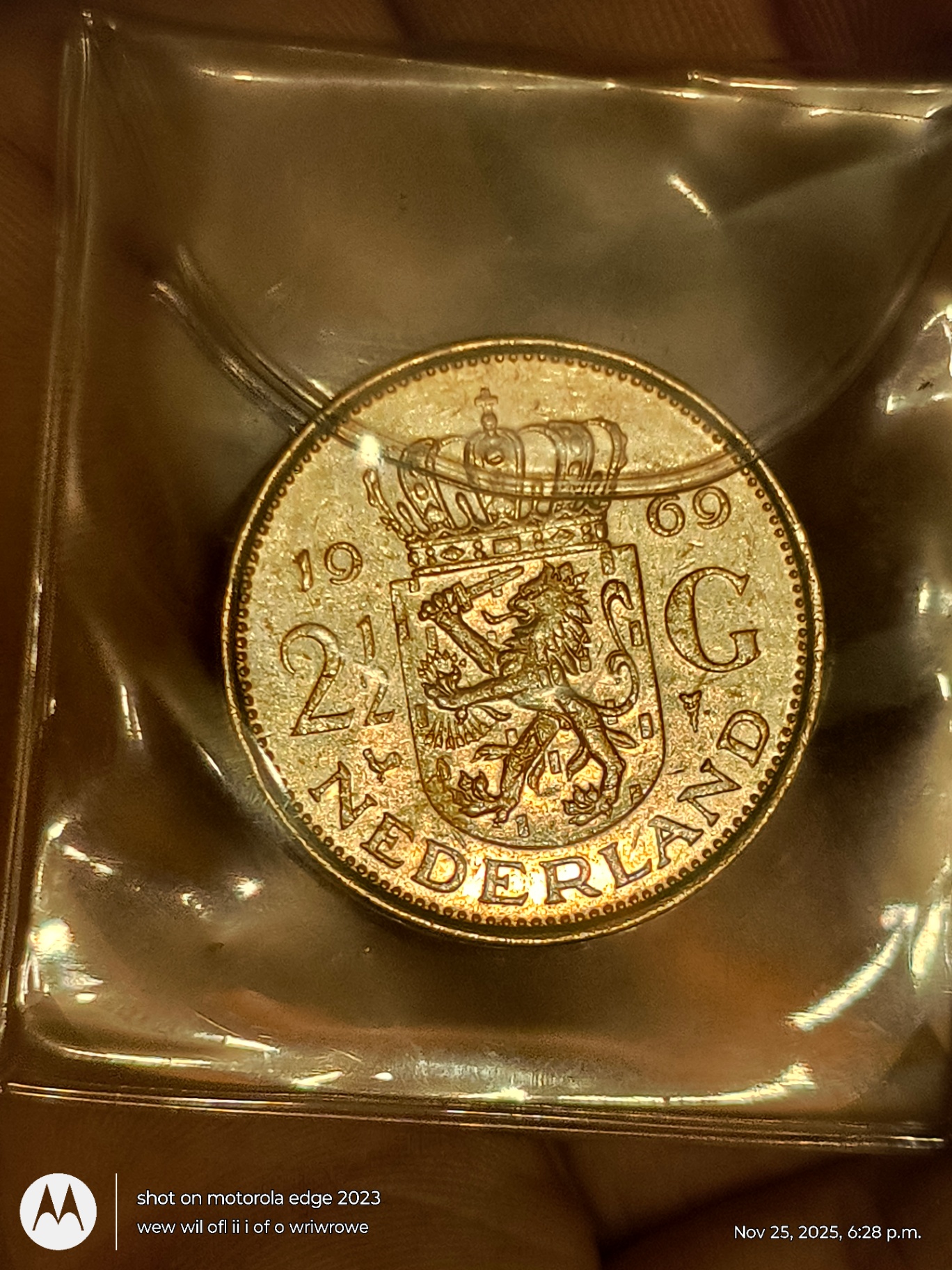 of Netherlands coins dating from 1969. One side shows a crowned lion crest, and the other side bears the profile of Queen Juliana with the inscription 'KONINGIN DER NEDERLANDEN'.