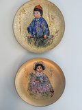 Two round porcelain plates featuring Edna Hibel designs 'Sakura' and 'Michio' from the Rosenthal Classic Roses Collection; hand-painted in 24K gold; edition limited to 2000; plate no. 1357.