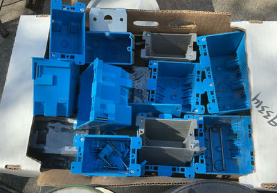 Different sizes of electrical wiring, plastic and metal boxes, box extenders, and all you see here .