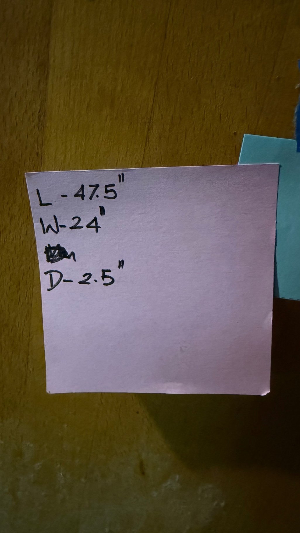 An extra large single wooden cutting board with a natural wood finish. Great for large BBQ gatherings and parties. Dimensions approximately 47.5 inches long, 24 inches wide, and 2.5 inches thick. BRING HELP TO MOVE AND APPROPRIATE VEHICLE