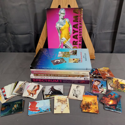 Fantasy Art in books and trading cards. Includes Sorayama, Vallejo, Varga, Vargas, and more. 7 plus pieces.