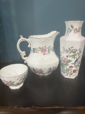 Floral porcelain pitcher, vase and bowl set