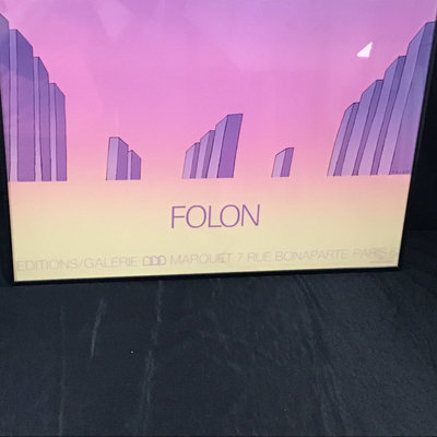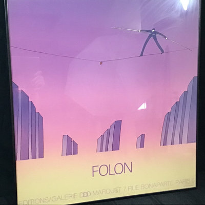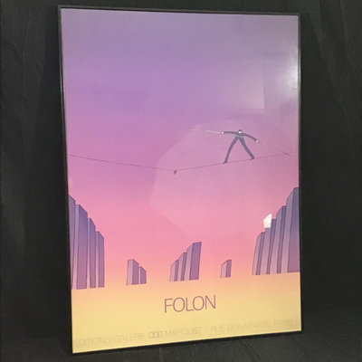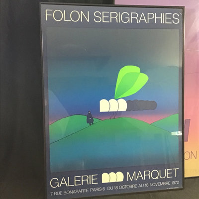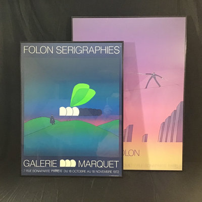 Jean-Michel Folon (Belgian, 1934-2005). Framed posters of art exhibits. Blue/green 25.75x19.75 framed, purple 30.25x22 framed. 2 pieces.