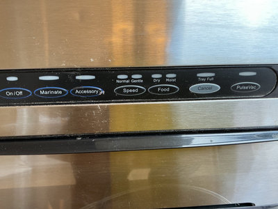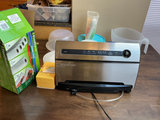 Food Saver appliance plus a box of rolls of Bags, Frigidaire glass storage with rubber lids,canning jars, and all you see.