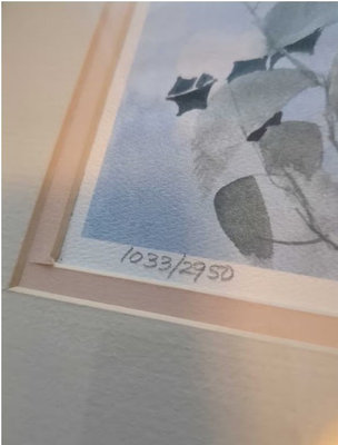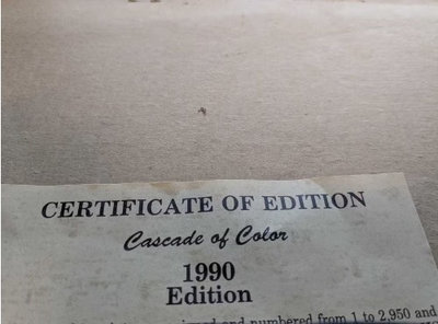 - Framed limited-edition art print (floral) - Title: Cascade of color, 1990 - Medium: lithograph - Edition: 1039/2950 (visible lower left) - Artwork appears clean; frame shows minor surface wear and small nicks; no obvious glass cracks; not removed from frame for inspection