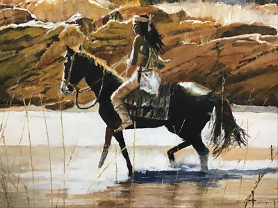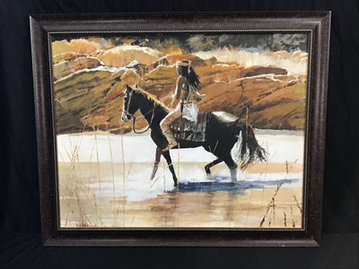 Acrylic on board, unknown artist, framed. Art 22x28, frame 26x32. 1 piece.