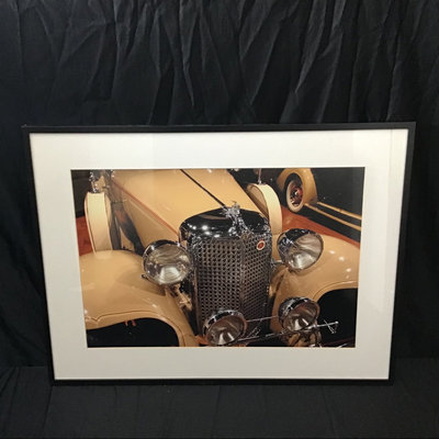 Closeup of the grill of a 1932 Packard 902 Coupe Roadster, or similar, has a tag on the side "National First Prize 1979 Winner," unclear what it where it was the winner. Framed 18.25x24.25. 1 piece.