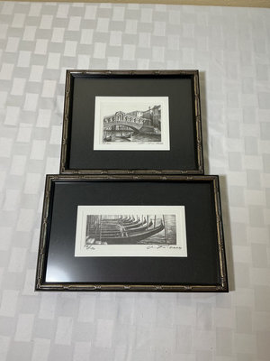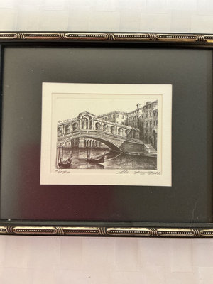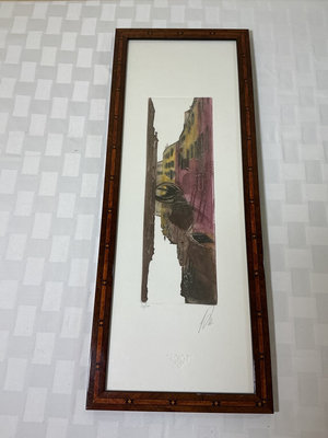 A collection of framed art depicting Italy and notably, Venice. All are professionally framed and original drawings and watercolors all signed some are numbered limited editions. Large print map measures 23.5 wide and 13.5 tall.