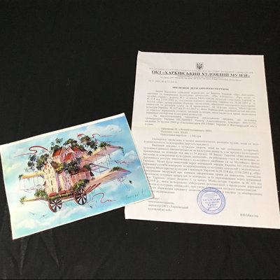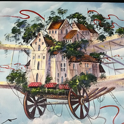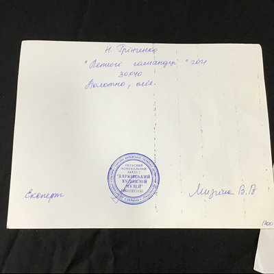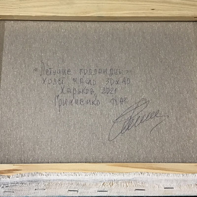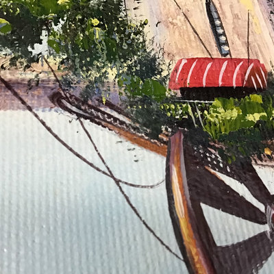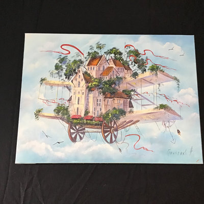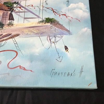 Natalia Grinchenko (Ukranian, 20th century). "The Flying Dutchman" 2021, acrylic on canvas. Signed bottom right, includes accompanying papers for customs/shipping from the original shipping box. 11.75x15.75. 1 piece.